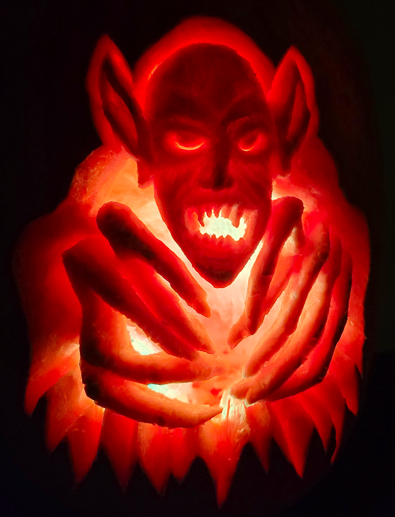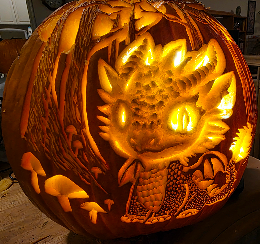 Check out the carvings below as we carve them. They will be on display during Halloween Trick or Treating till 9:30ish and the evening after at: 14223 Hartwood Court, Centreville, VA 20121 You can also follow my in-process carvings on Bluesky - @noeldickover, Pumpkins from the year... |