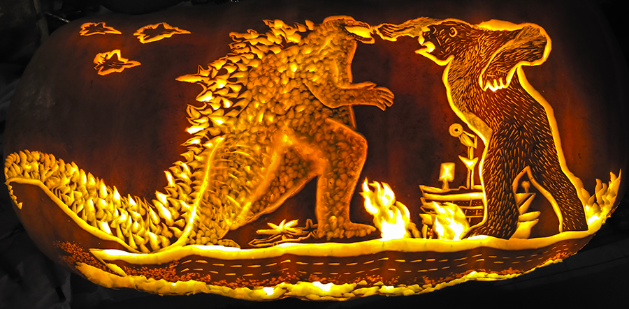 Godzilla vs Kong on an air craft carrier: 30 inch carve - Noel